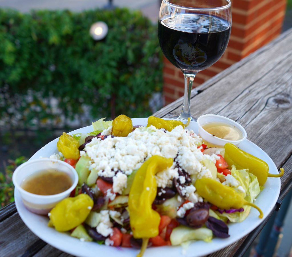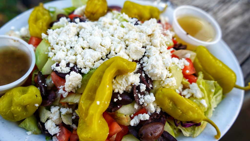 Greens, cucumber, onion, kalamata olives, tomato, feta, pepperocini, greco vinaigrette.